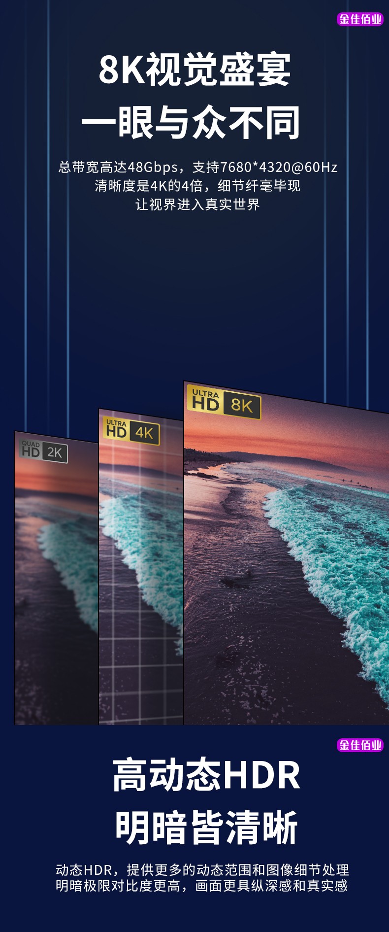 1.HDMI2.1標(biāo)準(zhǔn):8K/60Hz 3D 48Gbps;