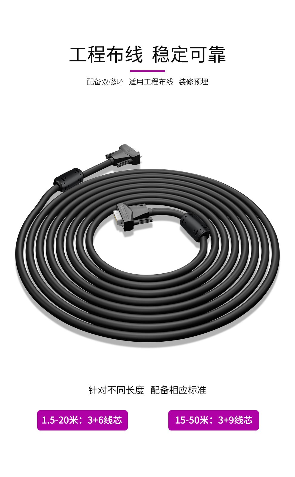 VGA3+9線 公對公 雙磁環(huán) 實心針
