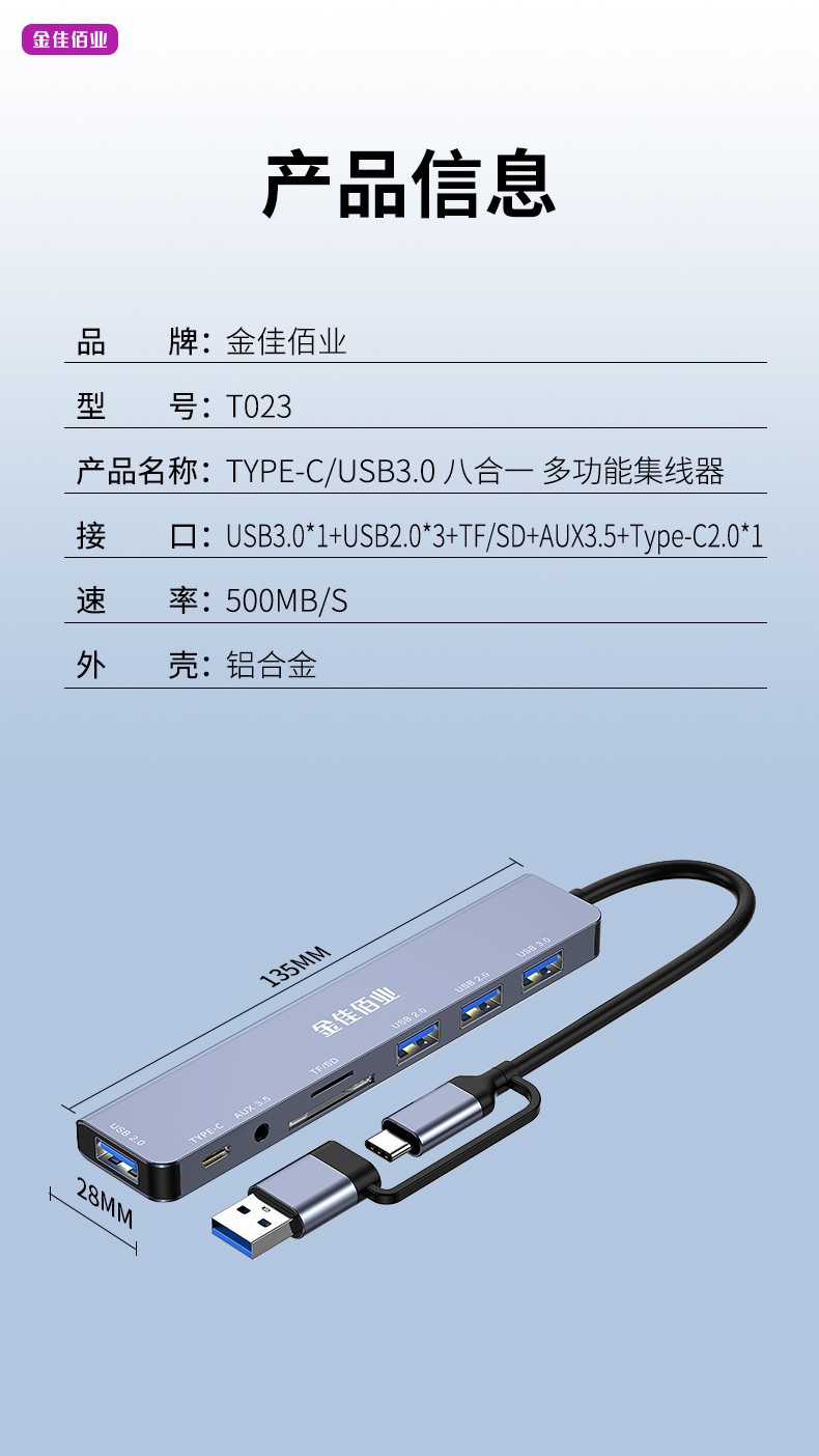 USB3.0*1+USB2.0*3+TF/SD+AUX3.5+Type-C