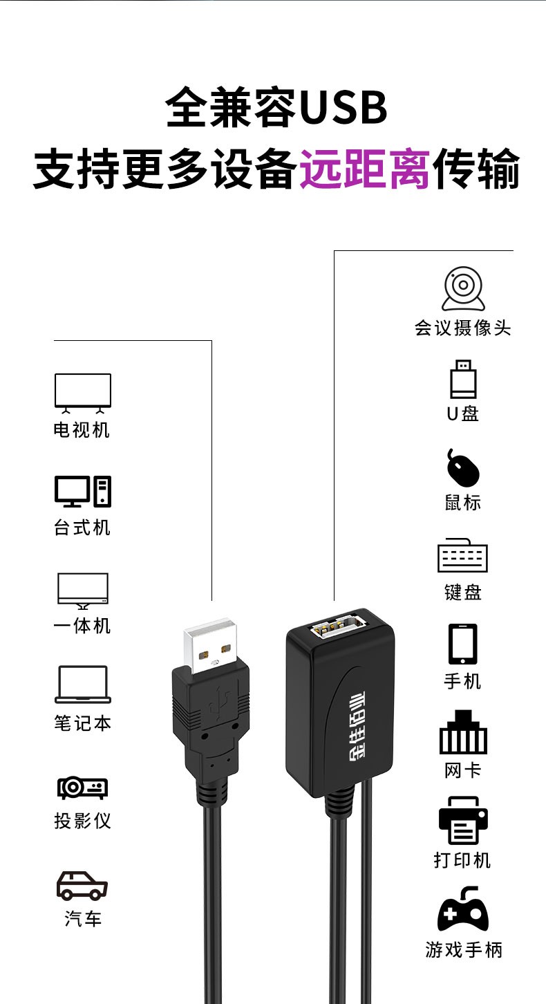 1.USB2.0延長器,環(huán)保PVC外被2.全銅芯線,多層屏蔽抗干擾,信號穩(wěn)定3.進口芯片,高速傳輸,超強延長,不失真 4.兼容眾多設(shè)備遠距離傳輸5.24AWG+26AWG線規(guī) OD5.06.10米-15米一個放大器,20米-25米二個放大器,30米三個放大器
