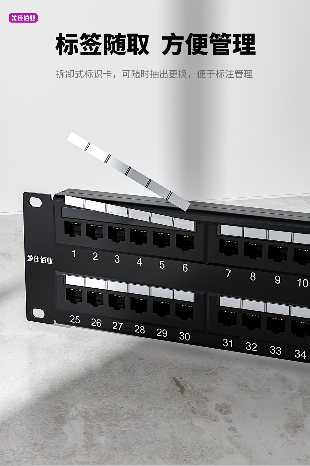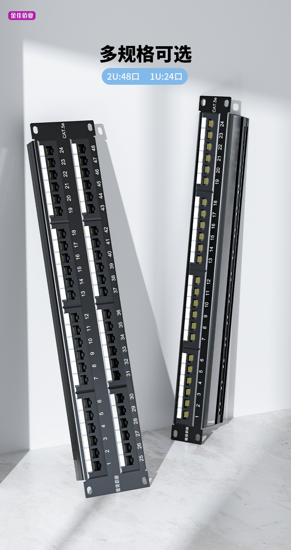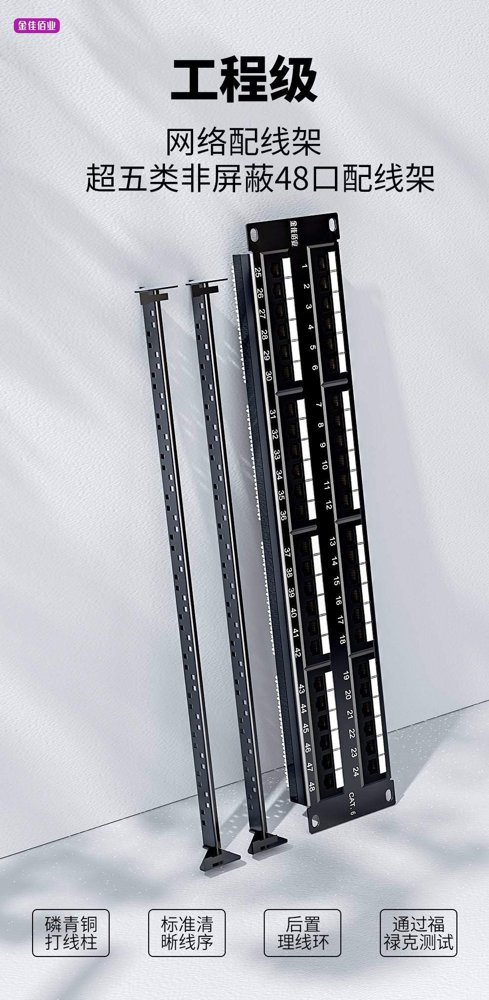 3. 標(biāo)準(zhǔn)線序,所有插座都具備T568A和T568B兩種線序,適用所有19英寸標(biāo)準(zhǔn)機(jī)柜,后置理線環(huán)