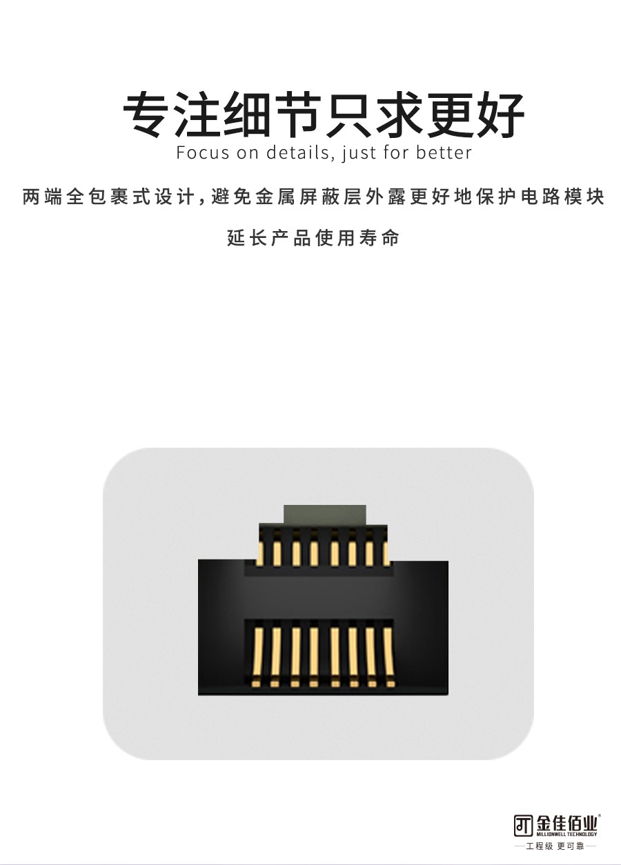 屏蔽加強(qiáng),抗干擾,耐插拔,延長(zhǎng)產(chǎn)品的使用壽命