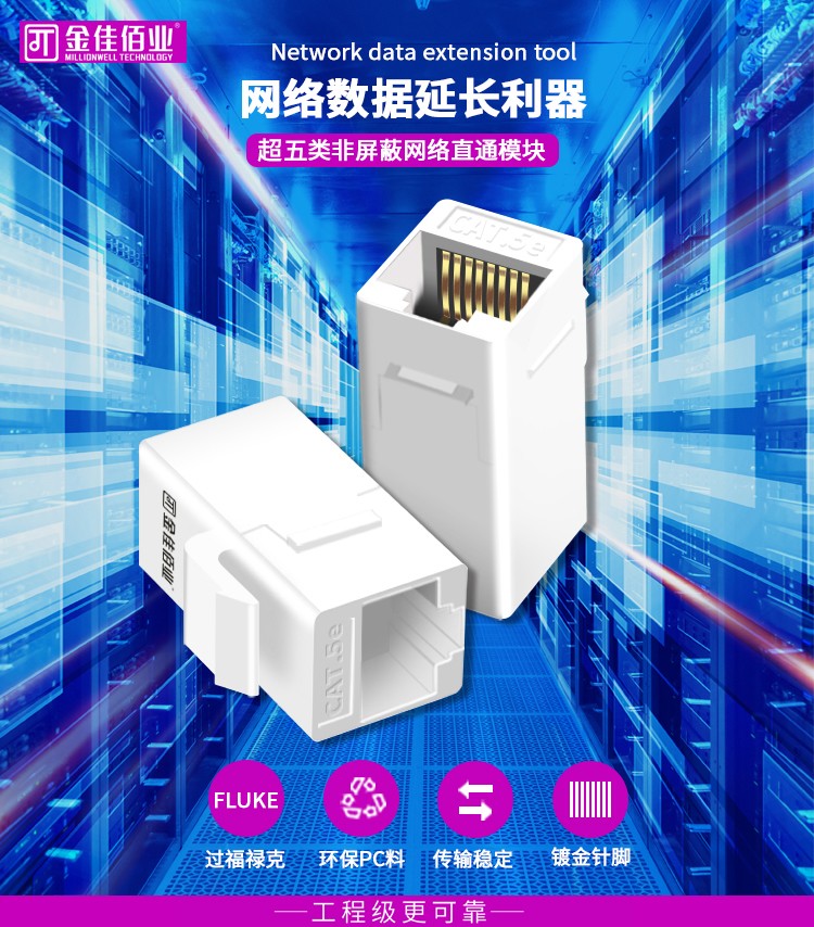 高強(qiáng)度磷青銅/鍍金端子/即插即用/過(guò)福祿克測(cè)試,提供穩(wěn)定的百兆網(wǎng)絡(luò)數(shù)據(jù)傳輸,網(wǎng)線隨意延長(zhǎng)