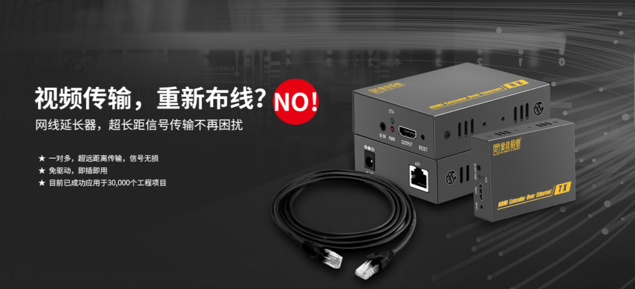 在這樣的情況下最好安裝HDMI延長器,避免信號的損壞,CAT5/6網線在中間延長連接,增強信號穩(wěn)定,同時也可以避免線路中故障節(jié)點。通過HDMI信號延長器,可以將HDMI信號延長一定的距離。一般而言,需要高清影音遠距離傳輸?shù)脑O備,都可以用到HDMI延長器,金佳佰業(yè)HDMI網線延長器被廣泛應用于多媒體教學、大屏顯示、電話會議、科研、超市、會展等領域中確保信號長間隔無衰減的傳輸,深受市場好評。
