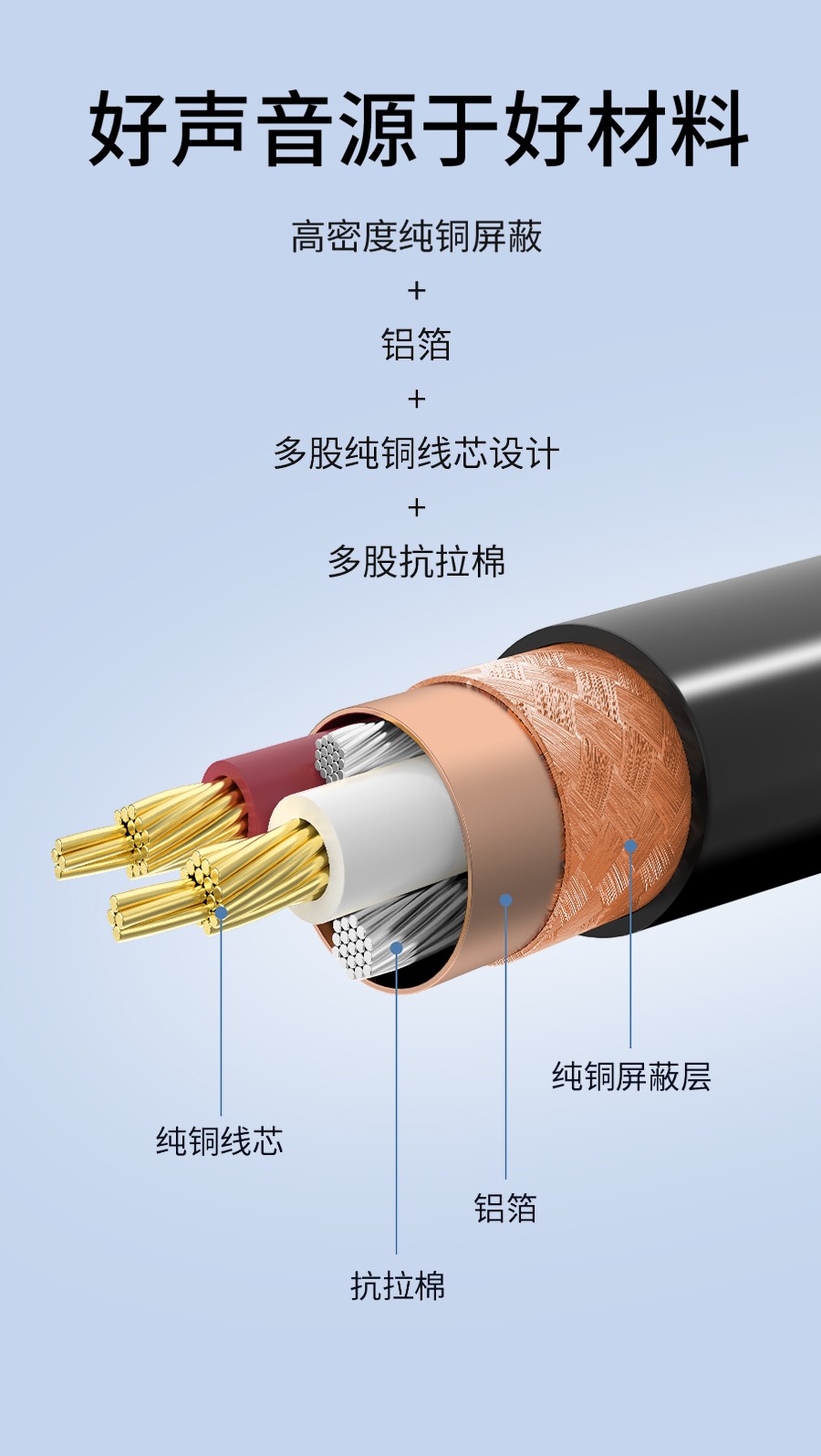 4. 24AWG線芯、純銅屏蔽+96編多層屏蔽