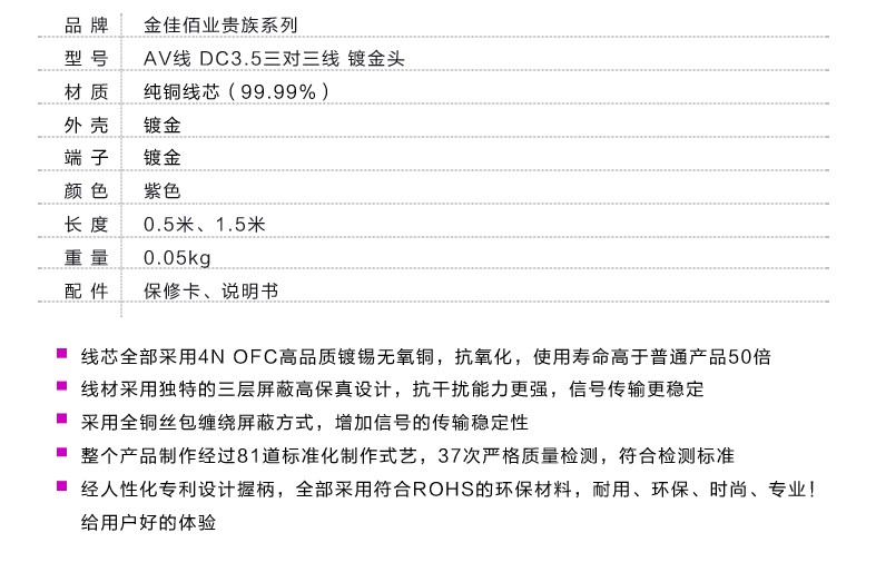 ?1. 鍍金插頭、保真音質(zhì)