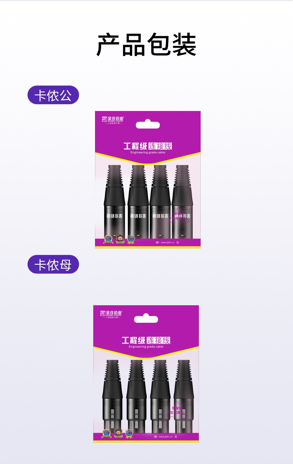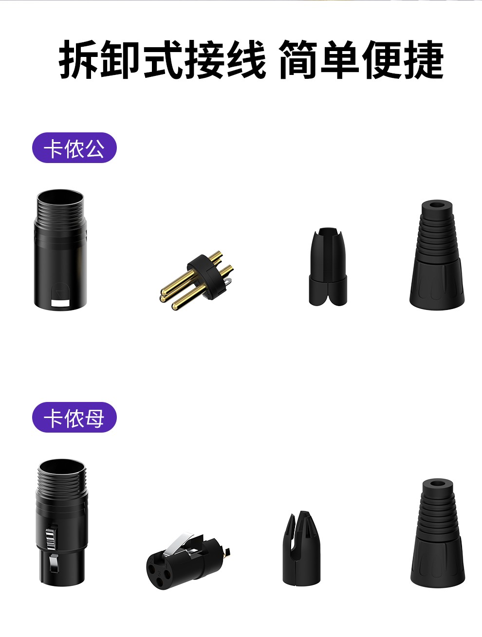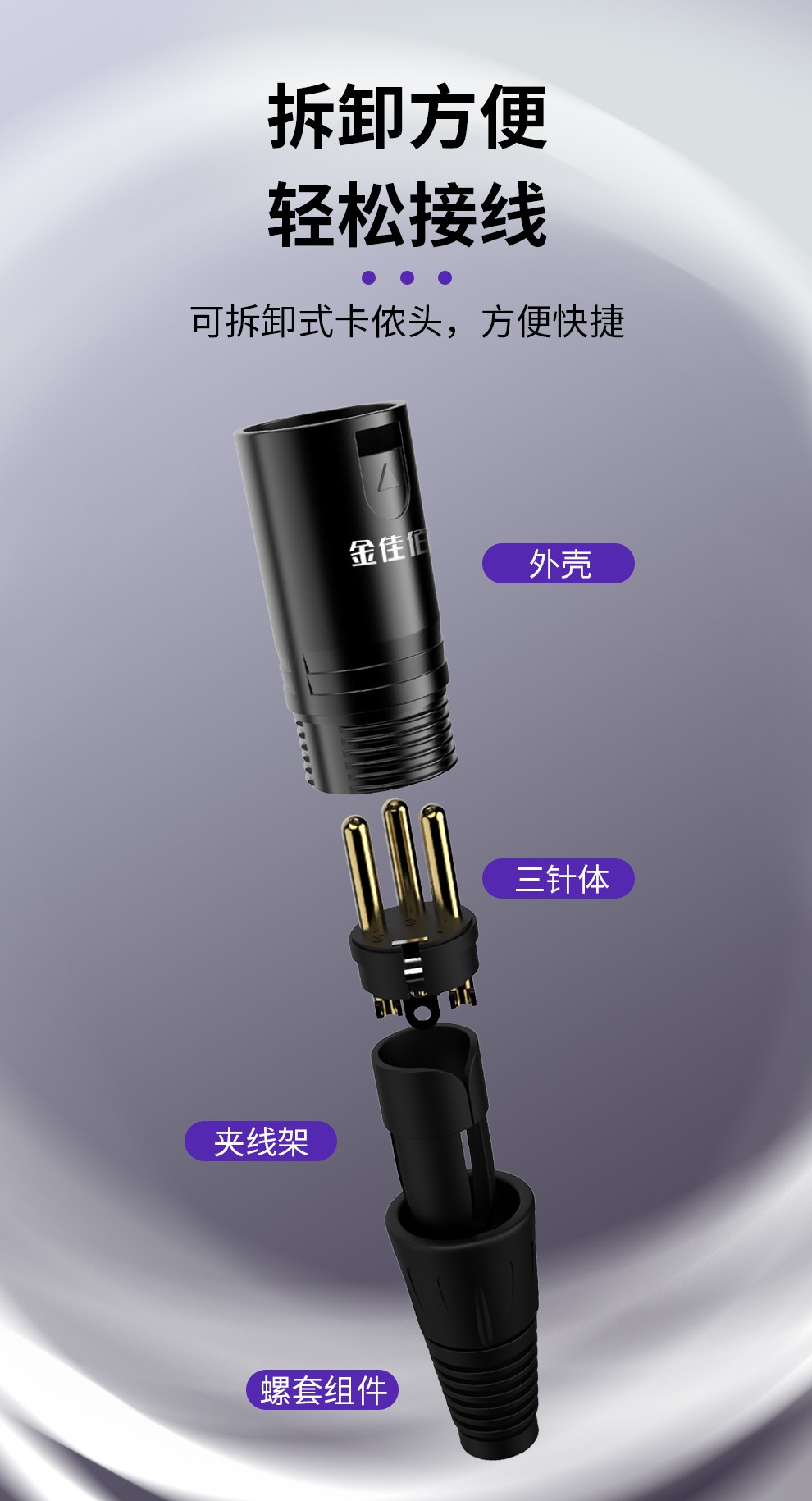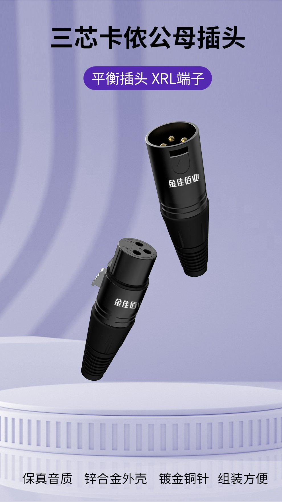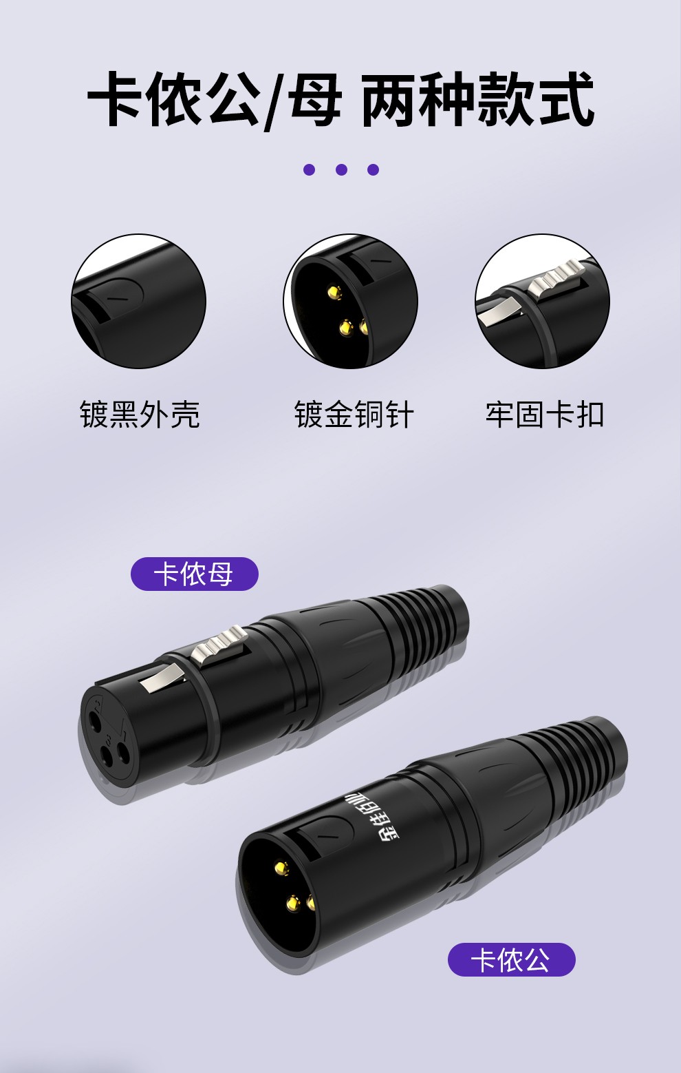 1. 專業(yè)級三芯卡儂頭公母插