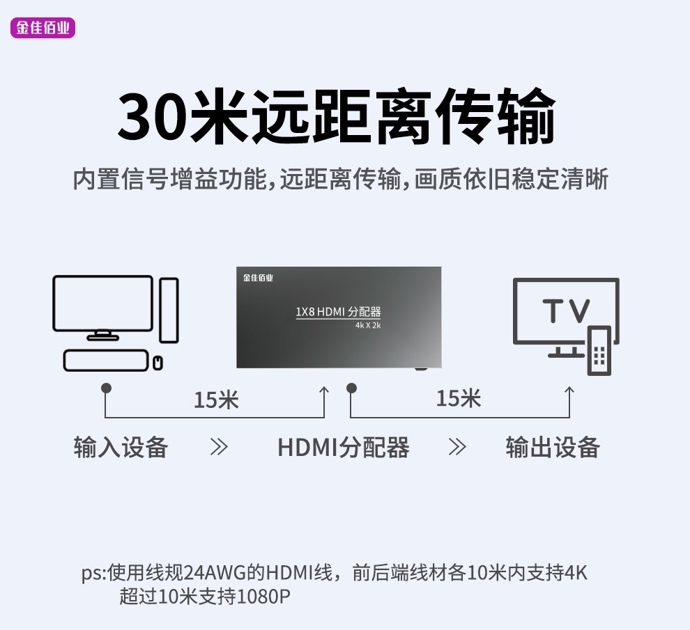 2.4K/30Hz 支持前10米后10米極限輸出;(金佳H113)