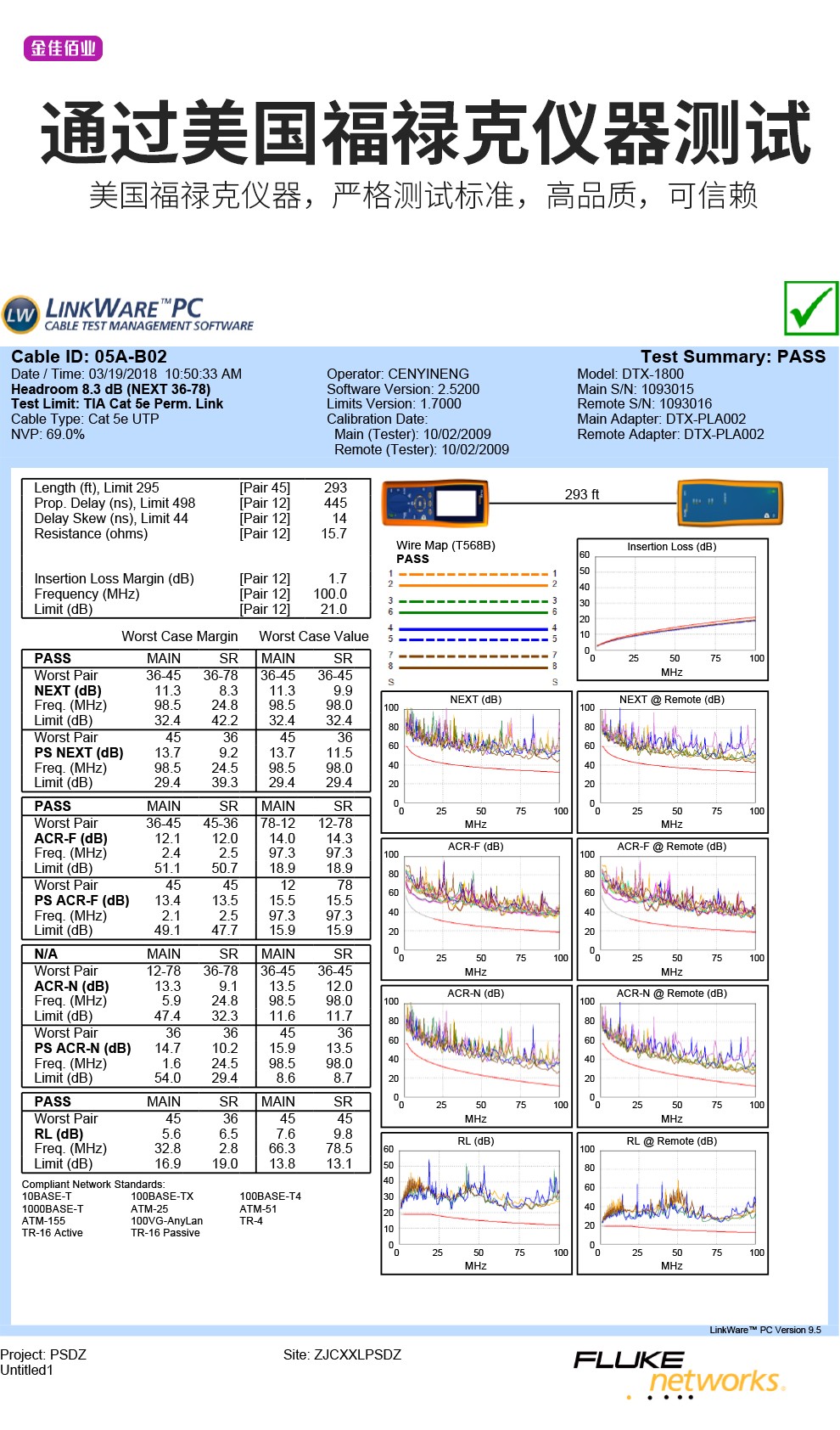 符合百兆以太網(wǎng)應(yīng)用系統(tǒng),過(guò)福祿克測(cè)試