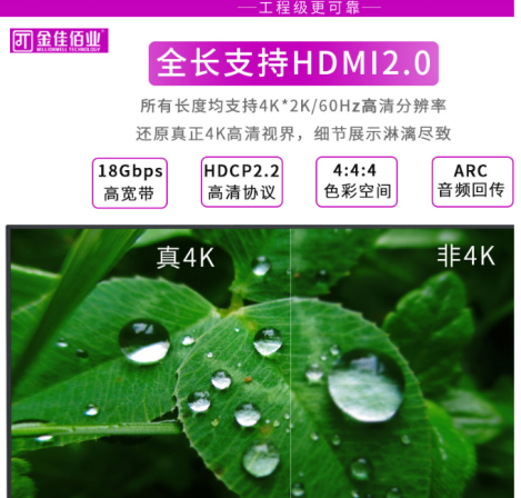 金佳佰業(yè)HDMI AOC的高清線專注工程線纜,給客戶提供發(fā)燒級(jí)影院品質(zhì);光電轉(zhuǎn)換芯片100米以內(nèi)全符合HDMI2.0傳輸品質(zhì)。